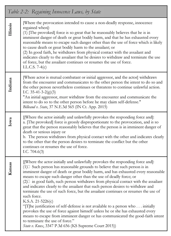 He also wrote a book titled The Law of Self Defense, which is available for order on Amazon. In it, there is special section dedicated to state-specific legal information. One screenshot from the sample is provided below.