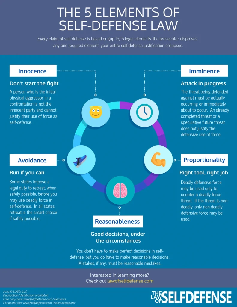 It is crucial to understand that the irresponsible use of any of these defensive tools can lead to a courtroom, a conviction, and imprisonment—even if you were only acting in self-defense. This underscores the importance for anyone who is shastardhari to be well-versed in the legal boundaries surrounding the use of such tools, regardless of whether they choose to stay within those limits. The reality is that most Americans (and likely Canadians as well) are unfamiliar with the self-defense laws in their state or region, including those who are trained in firearms and other protective arts. This is where the five elements of self-defense law come into play.