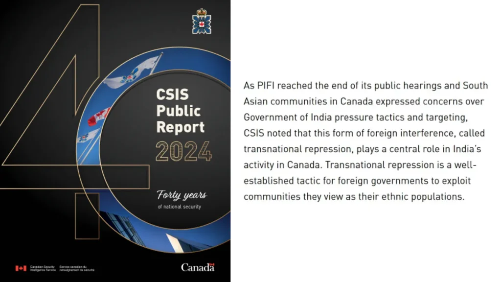 A section from Canada’s CSIS 2024 Public Report highlighting ongoing concerns about India’s activities within Canada